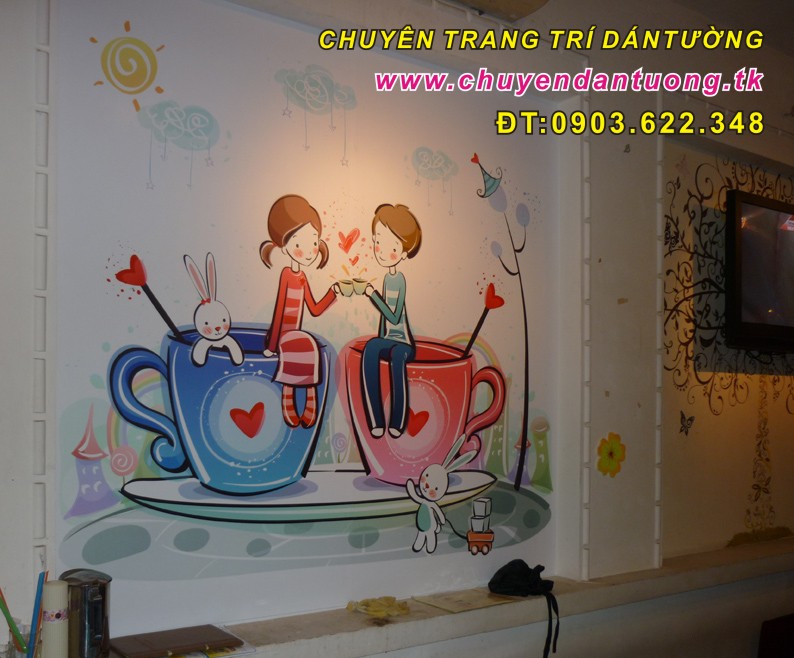 | Trang trí dán tường cho quán cafe, trà sữa |