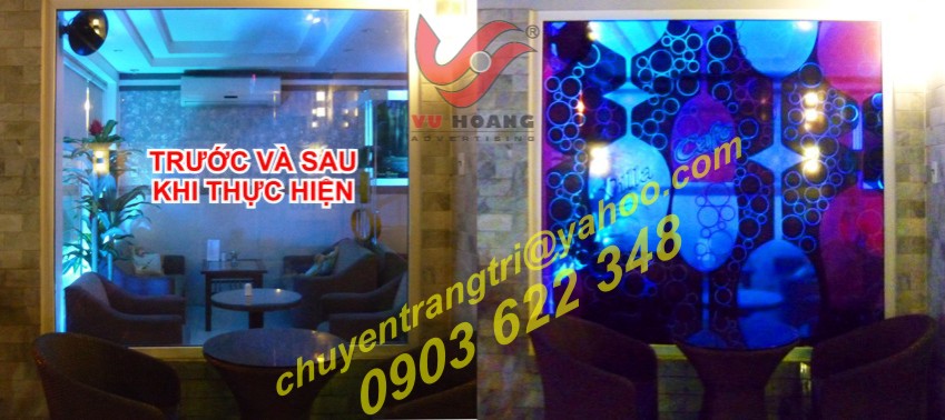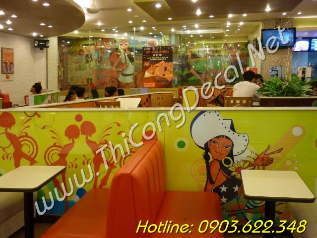 Trang trí dán decal, dán PP, dán poster cho trà sữa, cafe (hotline: 0903.622.348) quán ăn, nhà hàng, bar, karaoke ... dán trên kính trên tường