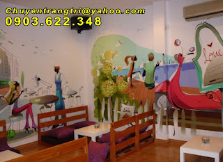Trang trí dán tường PP cho quán cafe, trà sữa |